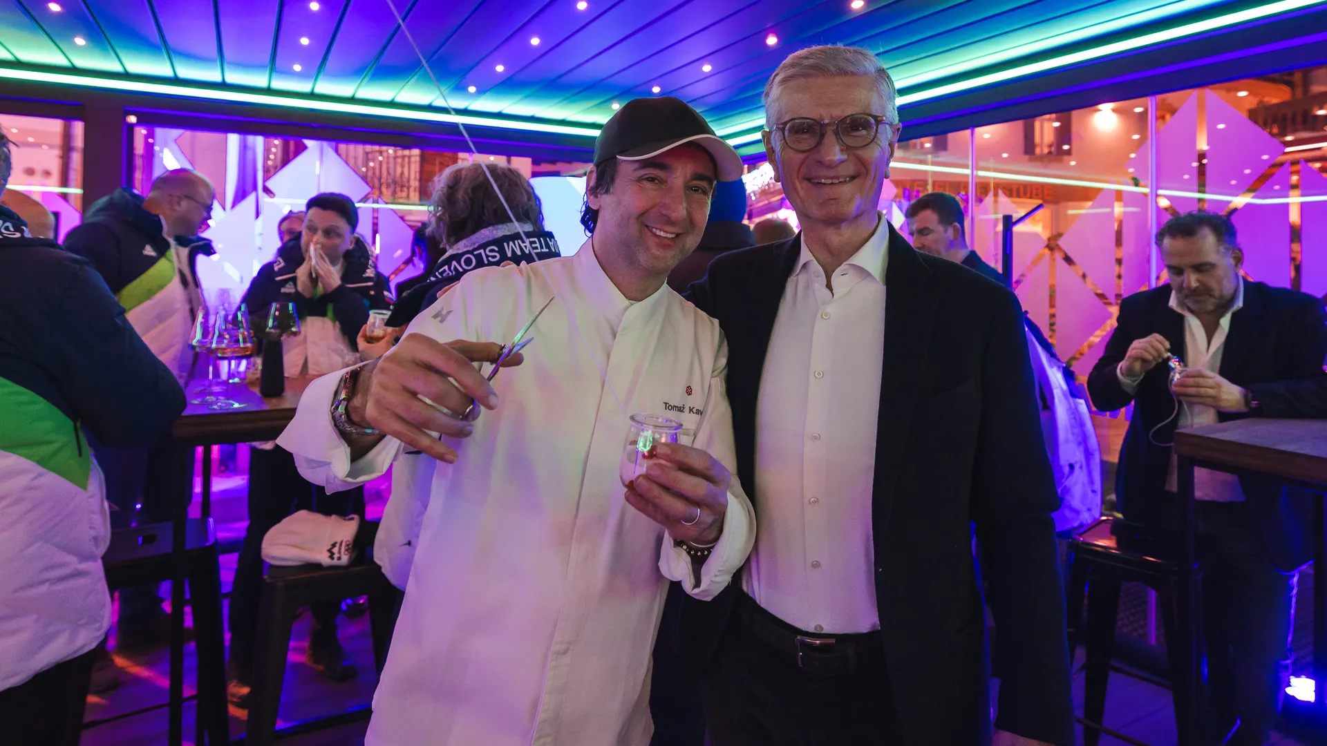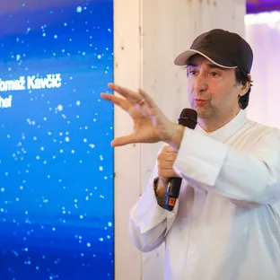 Med jedmi je bila tudi goveja juha, ki jo je postregel v steklenički. "Nad tem so bili najbolj presenečeni. Jasno je, da moramo gostom slovenske hiše v Cortini postreči prav to jed, za katero pa tokrat ni bilo treba seči po žlici," je pojasnil Kavčič.