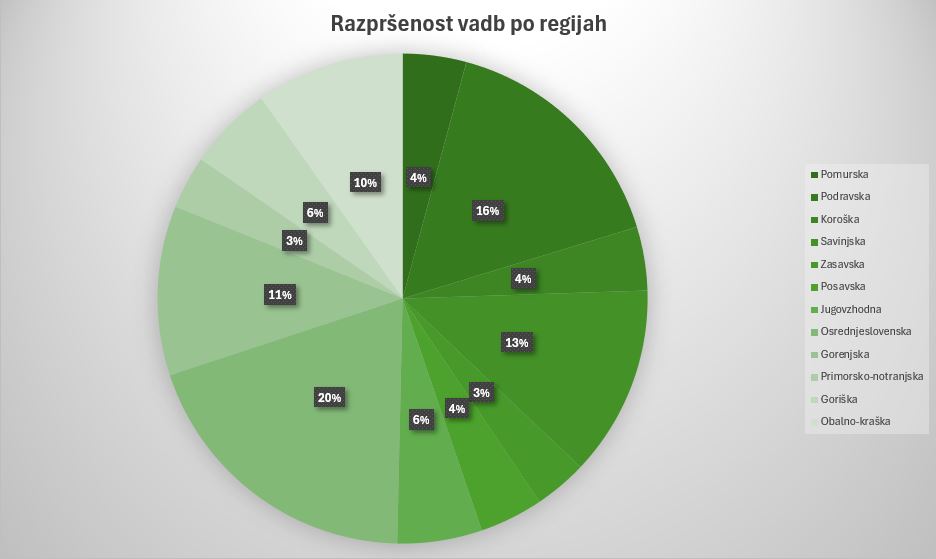 Razpršenost vadb 2025/2026 po regijah